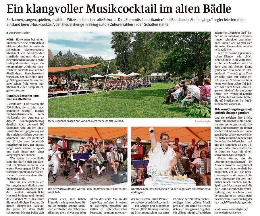 Am 13. August 2023 war unser 1. Auftritt im alten Freibad in Horb, anlässlich des Musikcocktails.